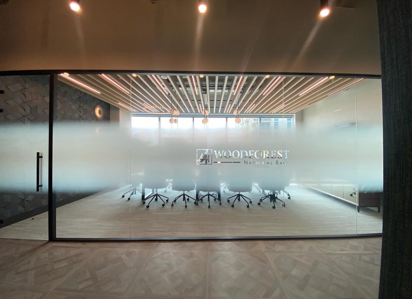 ACGI designed, produced, and installed a custom privacy film solution for an office space at The Star in Frisco. This elegant installation enhances both function and style—offering visual privacy while reinforcing the client’s brand identity.